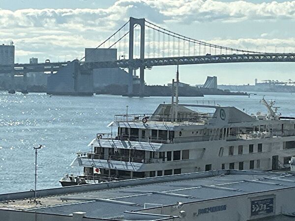 新橋を出てレインボーブリッジへ差しかかる頃、視界がふっと開けます。ビル群、運河、空の広がり。この景色を眺めているだけで、心が日常から離れていくのを感じます。